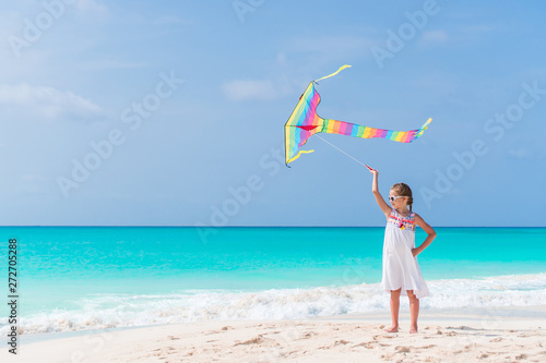 Little girl flying a kite on beach