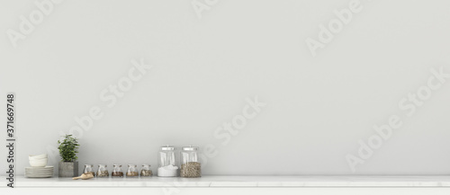 Living space in house. empty room with counter kitchen. classic interior design. -3d rendering