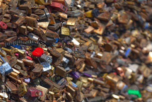 dating, flirting, paris, dedication, desire, engagement, footbridge, france, horizontal, lock, outdoors, padlock, photo, romance