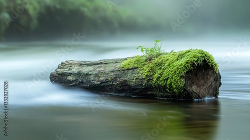 Log in Misty River, Nature's Embrace
