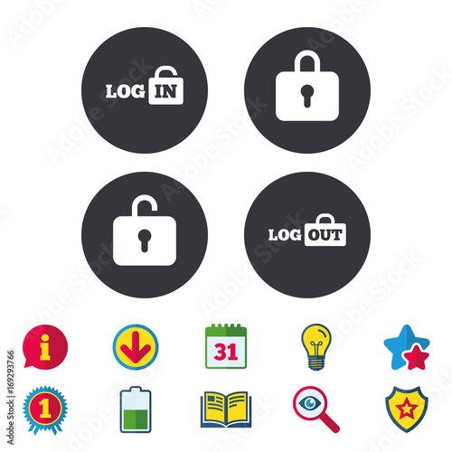 login, log, signs, up, logout, out, exit, leaves, quit, close, entry, lock, join, membership, web, interface, cyberspace, icon, buttons, symbol, flat, label, mark, token, shape, information, set, badge, app, vector, book, star, calendar, light, bulb, battery, award, shield, download, search