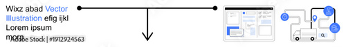 logistic, connectivity, e-business, screen, network, communication, software, delivery truck, metaphor, business, concept, flat, web, simple, blue, black, landing, page, banner, text, website, online shopping, distribution, vector, illustration, icon