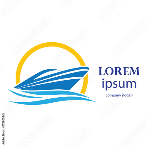 logo design of a boat sailing in the blue ocean