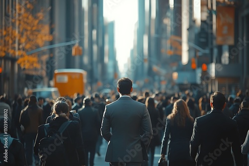 city, crowd, urban, street, businessman, skyscraper, building, metropolis, anonymous, commuter, rush hour, sunlight, shadow, backview, perspective, man, suit, walking, traffic, tied-up, city landscape, new york city, anonymity, daytime, people, humanity, massa, society, diversity, city landscape, autumn leaf, street scene, urban life, city street, blurred background, business attire, big city, urban setting, city life, individuality