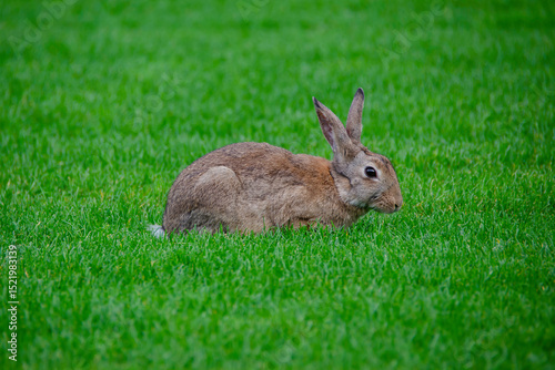 Lonely rabbit in a beautiful green field