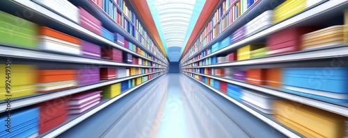 long, aisle, colourful, book, shelve, library, shelf, paperback, hardcover, fiction, dictionary, anthology, manuscript, hobby, bookshop, photo, mag, romance, collection, periodical, corridor, bookshelf, book, colourful, neat, orderly, bright, vibrant, eye-catching, display, skylight, natural light, cheerful, study, row, arranged, red, blue, green, yellow, pink, orange, purple, end, size, space, mood, conveying