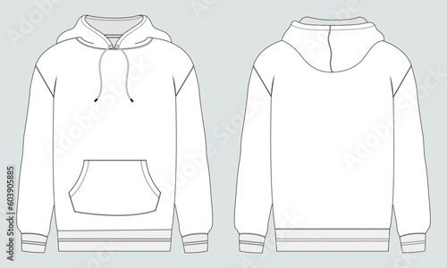 Long sleeve hoodie vector illustration template front and back views