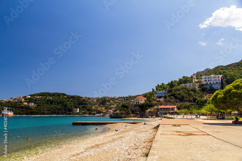 Looking along the beach at Sami, Kefalonia, Greece