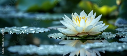 Lotus flower on calm pond. Generative AI technology.