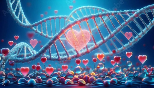 Love in DNA A DNA strand with heart shapes in the sequence