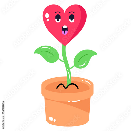 love, plant, nubes, growth, valentine, houseplant, pot, decorative, icon, vector, flat, sticker