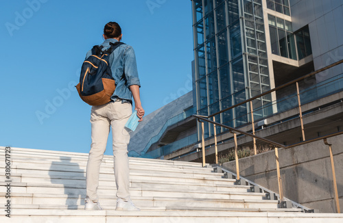 student, man, college, medicals, mask, people, pandemic, 1, street, face, backpack, day, travel, bag, epidemic, adult, campus, back, casual attire, blue, building, city, guy, education, distance, clothing, copy space, greece, lifestyle, low angle, safety, modern, new, person, protection, stylish, traveler, unhygienic, university, view, virus, sunglasses, holiday maker