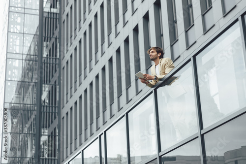 business, businessman, male, tablet, outdoors, man, work, suit, corporate, executive, technology, holding, person, cyberspace, contraption, device, modern, using, manager, photogenic, digital, intelligence, career, wireless, earphones, standing, working, confident, entrepreneur, connection, building, urban, financial, remote, tied-up, bearded, success, attractive, portrait