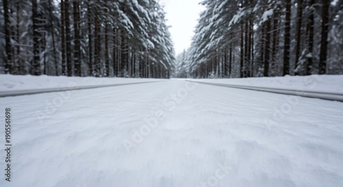 Low Angle View of Snowy Forest Road in Winter