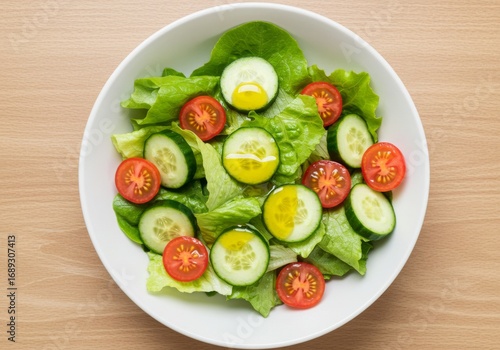 Low calorie fresh vegetable salad with cucumber, lettuce and cherry tomatoes