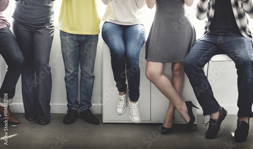 activity, body, body part, break, casual attire, cheerful, colourful, concept, foot, female, friends, friendship, group, half, hipster, hispanic, leg, lifestyle, man, many-coloured, people, relaxation, team, teamwork, teenage, teenage, together, togetherness, oneness, university, woman, young