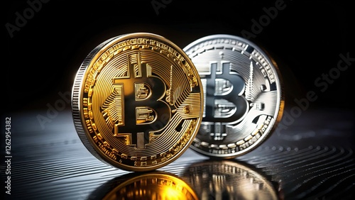 gold, silver, coin, low light, photo, dark, background, digital artwork, illustration, finance, investment, money, black, lighting, dramatic, realistic, crypto, technology, future, economy, greyscale, abstract, artistic, graphic, photorealistic