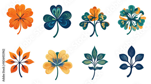 lucky four three shamrock leaf icon flat vector on white background