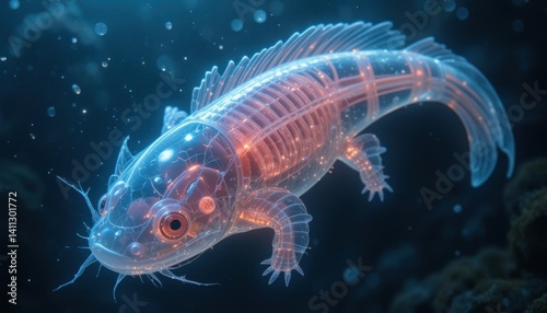 Luminous Aquatic Creature: A Transparent Fish in Ethereal Blue