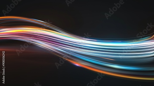 Luminous Curved Light Streaks in Dark Space - Abstract 3D Render with Illuminated Trails
