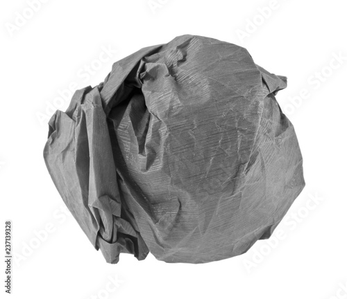lump of crumpled gray paper isolated on white background