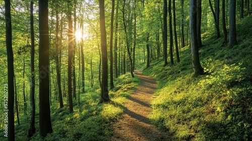 forest, nature, sunlight, foliage, green, peaceful, tree, lush, path, serene, timberland, landscape, scenic, tranquil, hiking, trail, summer, wilderness, environment, outdoors, adventure, natural, spring, winding, dense, beautiful, greenery, shadow, autumn, journey, sunshine, quiet, leaf, shade, vegetation, countryside, mountain, relaxation, print, sunlit, natural beauty, background, wood