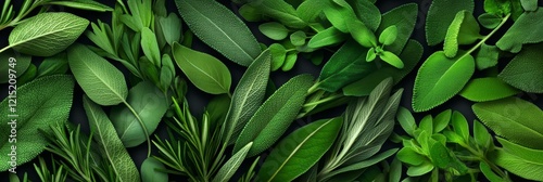 Lush Green Herb Collection - A vibrant close-up showcasing a variety of fresh green herbs, perfect for culinary or herbal backgrounds.