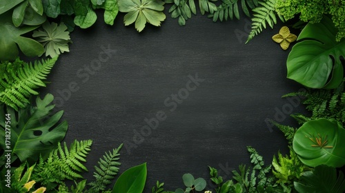 Lush Green Leaves Frame on Dark Background for Nature and Wellness Concepts