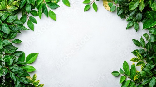 Lush Green Leaves Framing A Clean White Background Creating A Natural Botanical Aesthetic