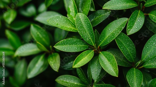 Lush Green Leaves with Water Droplets Reflecting Nature Beauty