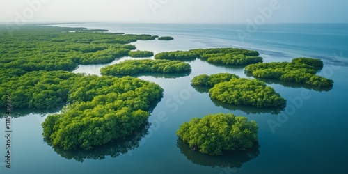 Lush green mangrove forests and mudflats create a unique ecosystem. These mangrove areas serve as vital carbon sinks, effectively capturing CO2 from the atmosphere and contributing to blue carbon