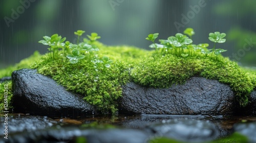 moss, rock, rain, green, nature, water, stream, plant, forest, wet, leaf, growth, spring, vibrant, background, texture, detail, environment, ecology, flora, botanical, serenity, peace, calm, fresh, droplet, beauty, landscape, wilderness, scene, image, photo, picture, photo, earth, earth, life, plant, stone, summer, season, wetness, humidity, leaf, tree, ivy, grass, growing