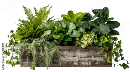 Lush Green Plants in Wooden Planter Box Indoor Garden Decor