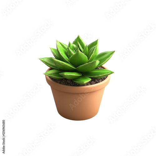 Lush Green Succulent Plant in Decorative Clay Pot on White Background