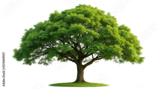 green tree, deciduous tree, green leaf, tree trunk, natural background, hi-res, studio shot, green background