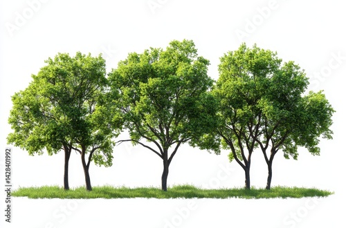 Lush Green Trees in Vivid Detail Against a White Background for Nature and Landscape Inspiration