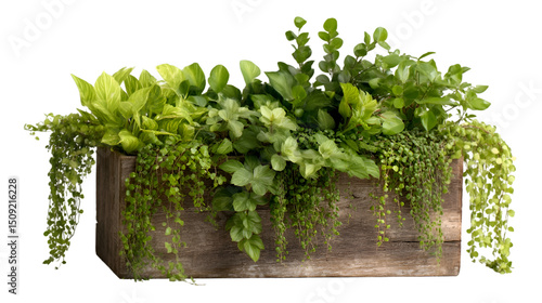 Lush greenery overflowing rustic wooden planter box