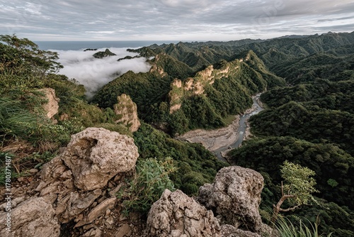 landscape, mountain, coast, cloud, vale, vista, nature, scenic, greenery, forest, river, ridge, geology, rock, peak, height, perspective, aerial, overview, daytime, sky, cloudy, overcast, terrain, topography, travel, exploration, adventure, wild, wilderness, secluded, remote, untouched, peaceful, tranquil, serene, quiet, majestic, grand, impressive, striking, picturesque, beautiful, stunning, breathtaking, huge, expansive, highland