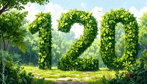 number, forest, green, leaf, lush, pathway, nature, sunny, tree, landscape, background, digital, art, illustration, floral, spring, summer, scene, beautiful