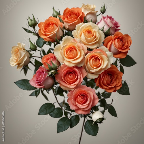 Lush peach roses and textured eucalyptus create a classic, romantic bouquet. Generative AI
