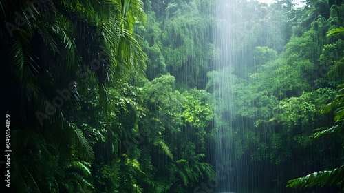 Lush Tropical Jungle Enveloped in a Cascading Rain Shower