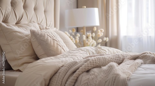 Luxurious bedroom interior with bed.