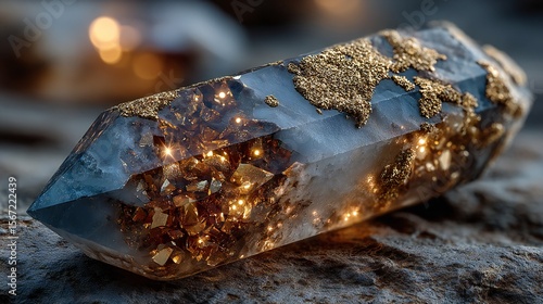 Luxurious Clear Quartz Cluster with Golden Crystals in a Stunning Close-Up Photography Shot for Jewelry, Mineral, or Crystal Collectors and Enthusiasts