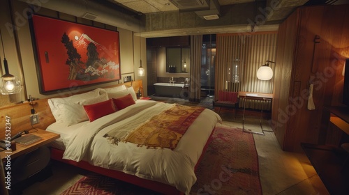 lamp, apartment, architecture, comfortable, sofa, window, luxury, hotel, bedchamber, bed, room, interior, contemporary, decoration, double, decor, indoor