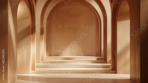 luxurious light brown product display environment, podium style architectural abstract background, copy and text space, 16:9