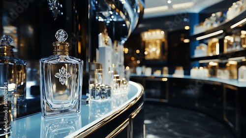 perfume, bottle, fragrance, luxury, shop, boutique, retail, display, glasses, gold, black, elegant, stylish, modern, beauty, cosmetic, scent, aroma, fashion, glamour, expensive, premium, product, store, shelf, counter, interior, design, decoration, showcase, crystal, container, liquid, essence, beautiful, decorative, attractive, shiny, glossy, clean