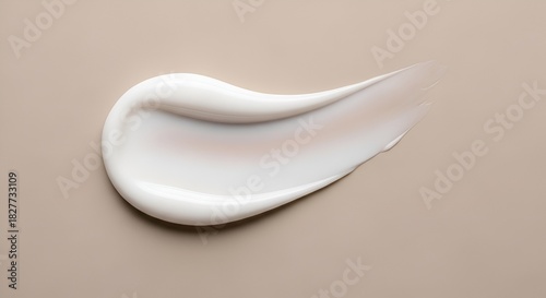 Luxurious white cream smear on beige background creating a smooth, elegant texture