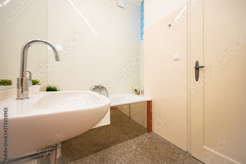 indoor, wc, home, real, residential, contemporary, furniture, apartment, building, household, empty, nobody, home, lighting, daylight, bathe, ceramic, washroom, luxury, clean, sink, faucet, tiled, architecture, bathroom, tile, white, interior, mirror, shower, indoor, tap, glasses, light, privies, room, water, estate, floor, design, bathtub, domestic, house, bright, apartment, cabinet, window, beige, renovation