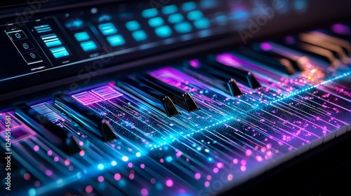 Luxury digital piano with integrated AR visuals for touch control feedback, multi-sound modes, and seamless connections in a modern music lab