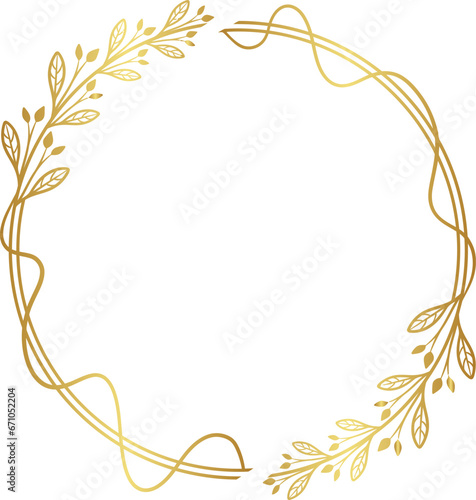 gold, doodle, elegant, luxury, ornament, wedding, leaf, frame, template, circle, decoration, design, floral, line, plant, illustration, element, simple, olive, border, floral pattern